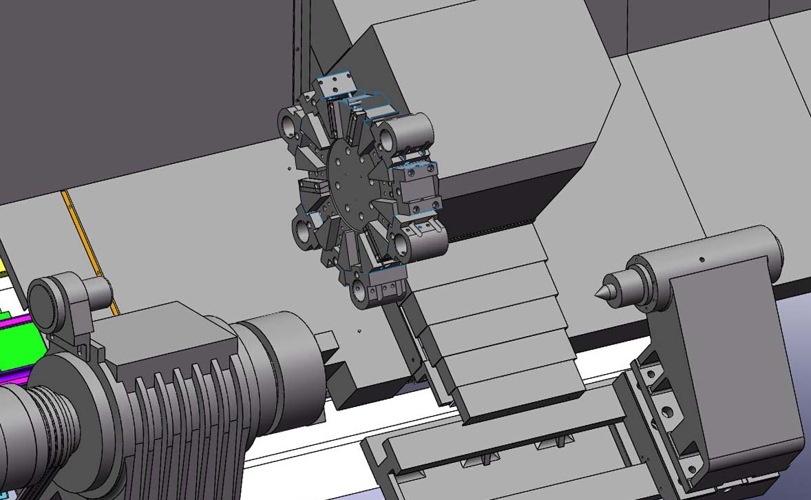 12工位液壓刀塔設計,定位準確,換刀速度快。